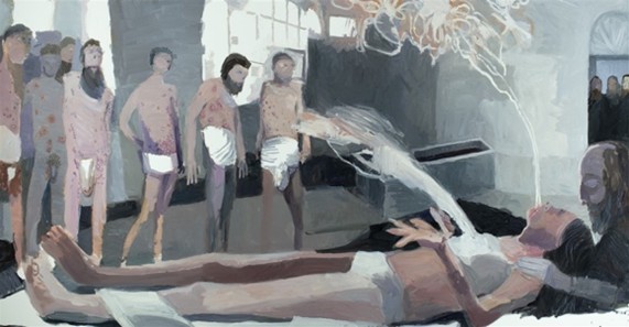 Hevig stuiptrekkend ligt Maria Magdalena op bed terwijl de demonen in ijle slierten haar lichaam verlaten. In het expressieve schilderij Demonenuitdrijving bij Maria Magdalena van Helen Verhoeven verdrijft Jezus rustig de demonen bij Maria Magdalena. In de deuropening kijken drie van zijn volgelingen toe. Mensen die geestesziek waren leefden vaak geïsoleerd. Door haar te genezen zorgt Jezus ervoor dat ze kan worden opgenomen in zijn groep. Maria Magdalena zal zelfs een van zijn belangrijkste volgelingen worden. Helen Verhoeven schildert vaker bijbelse verhalen die verwijzen naar actuele onderwerpen zoals isolement, het buitensluiten van de ander.
