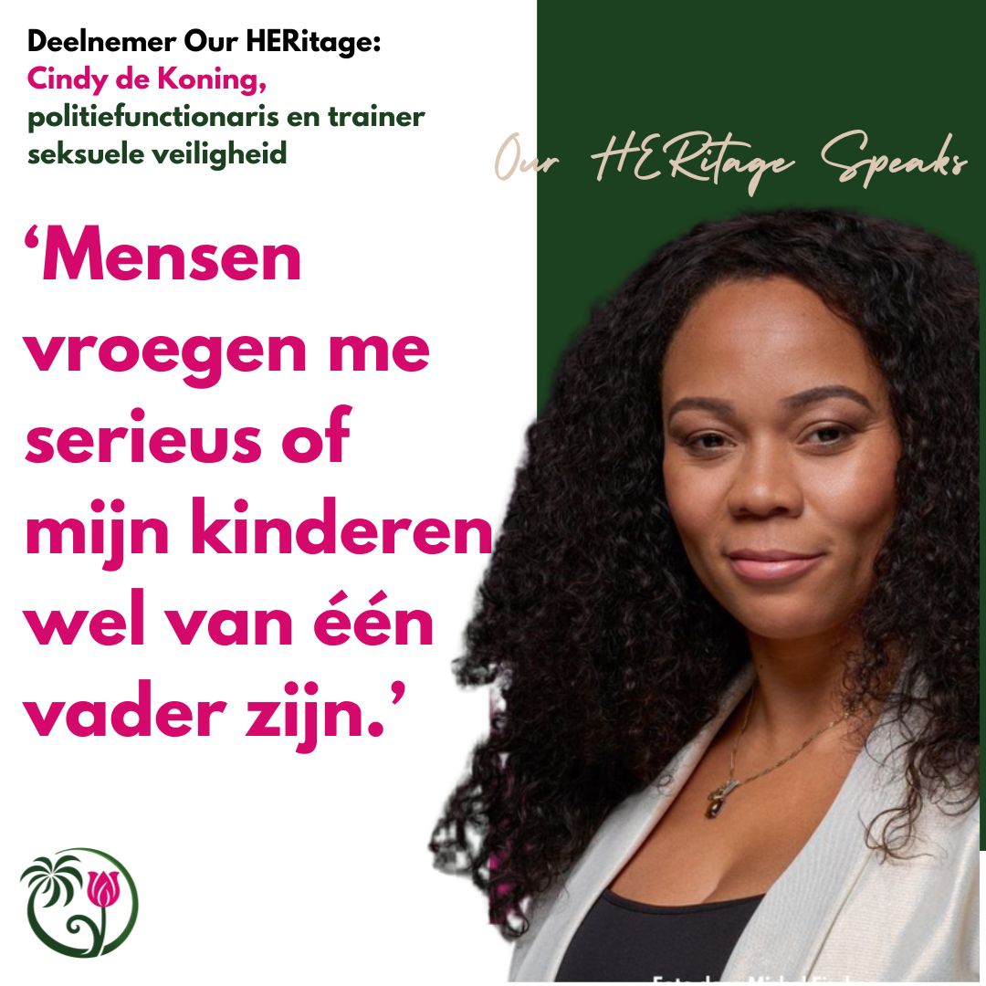 Ook Cindy de Koning, die als politiefunctionaris en deskundige dagelijks spreekt met vrouwen over seksueel geweld, ziet hoe oude wonden zich stilletjes verplaatsen naar het heden. Vooroordelen over zwarte vrouwen over hun seksualiteit, hun gezinssamenstelling komen haar nog te vaak ter ore. “Mensen vroegen me serieus of mijn kinderen wel van één vader zijn. Het lijkt misschien een losse opmerking, maar het laat diepe sporen achter in hoe je wordt gezien, en in hoeveel ruimte je voelt om je verhaal te doen.”