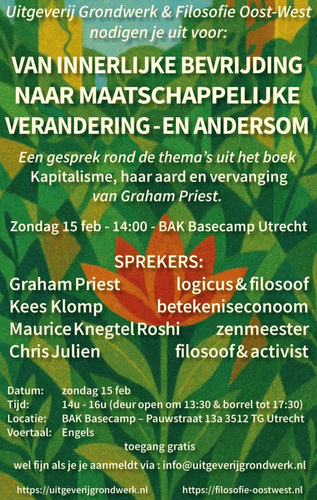 In de alledaagse opvatting richt de boeddhist zich op zijn persoonlijke spirituele verlossing en de marxist zich op de gemeenschappelijke maatschappelijke verlossing. Maar, als het persoonlijke politiek is, dan houdt deze tegenstelling geen stand. En dat roept vragen op voor de individuele beoefenaar van het boeddhisme, voor zijn geloofsgemeenschap (de sangha) en ook voor de marxist. Volgt maatschappelijke betrokkenheid automatisch uit spiritueel inzicht? Is een levensbeschouwelijke onderbouwing noodzakelijk of gewenst voor maatschappelijk en politiek engagement? Deze vragen staan centraal in een gesprek tussen boeddhisten, activisten en filosofen , waarin zij onderzoeken of en hoe het boeddhisme en marxisme elkaar kunnen versterken.
