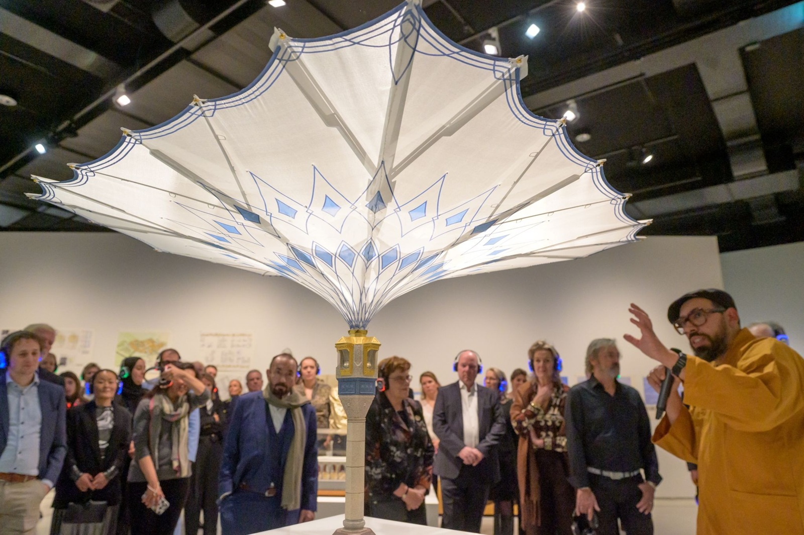 Wat hoopt hij dat bezoekers meenemen uit Van Bauhaus naar Mekka? “Twee dingen. Ten eerste: verwondering – dat traditie en moderniteit elkaar kunnen versterken. Dat een parasol meer is dan schaduw: het is een interface tussen lichaam, klimaat en gebed. Ten tweede: bewustzijn – dat schoonheid en goedheid samen optrekken. Als je ziet hoe elegant een luifel opent en hoe die beweging hitte, lucht en licht regelt, zie je esthetiek als zorg. Dat is husn.” Die blik reikt verder dan deze tentoonstelling. “Of je nu een museumzaal ontwerpt, een publieke ruimte of een product: vraag wat de natuur al weet over krachten, en wat rituelen nodig hebben van vorm. Dan wordt vormgeving een manier van samenleven.”