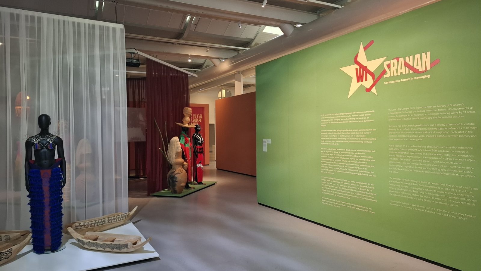 Tot slot, en zeker ook omdat ik als vrijwilliger bij Museum Cobra werk, raad ik iedereen aan de tentoonstelling van gastcurator Noukhey Forster te bezoeken, zie de foto’s in dit artikel. Met Wi Sranan, ‘Ons Suriname’ in het Creools, toont Museum Cobra tot 1 maart 2026 in een rijke mix van verschillende media de koloniale geschiedenis van Suriname (1667-1975), de strijd en transformatie die vijftig jaar geleden met de onafhankelijkheid gepaard gingen, en een vooruitstrevende visie op vrijheid, identiteit en de toekomst.